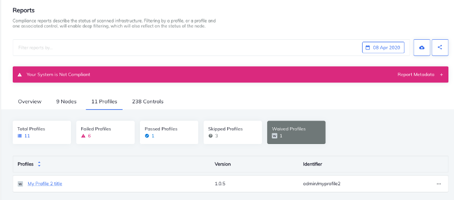 Chef customers wishing to view Waivers within Chef Automate, will need to be on the latest version of Chef Automate v2 (build number: 20200408145843).