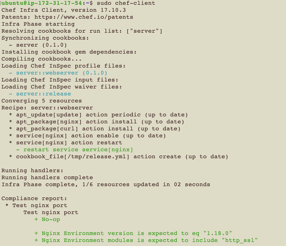 command will execute the cookbook in the target node along with all the recipes, compliance and waivers files.