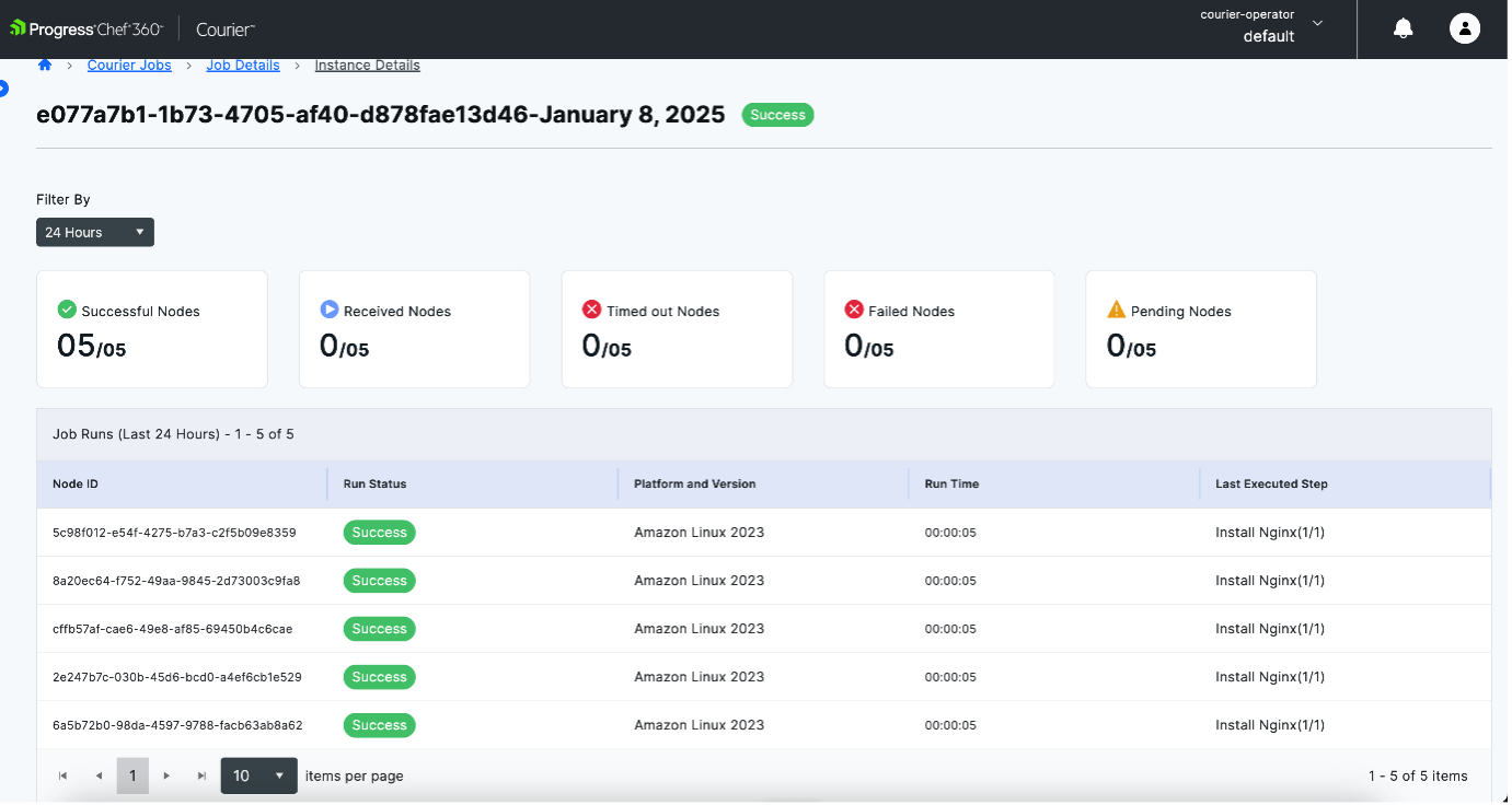 - Get a more granular view of each node by clicking on the Courier job and job instance.