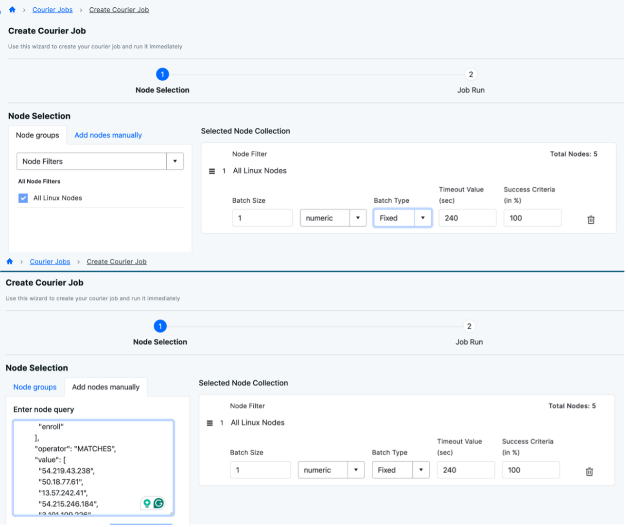 - You can also create a Node filter for all the enrolled nodes. This filter can be used when creating a job instead of hardcoding the values in JSON format.