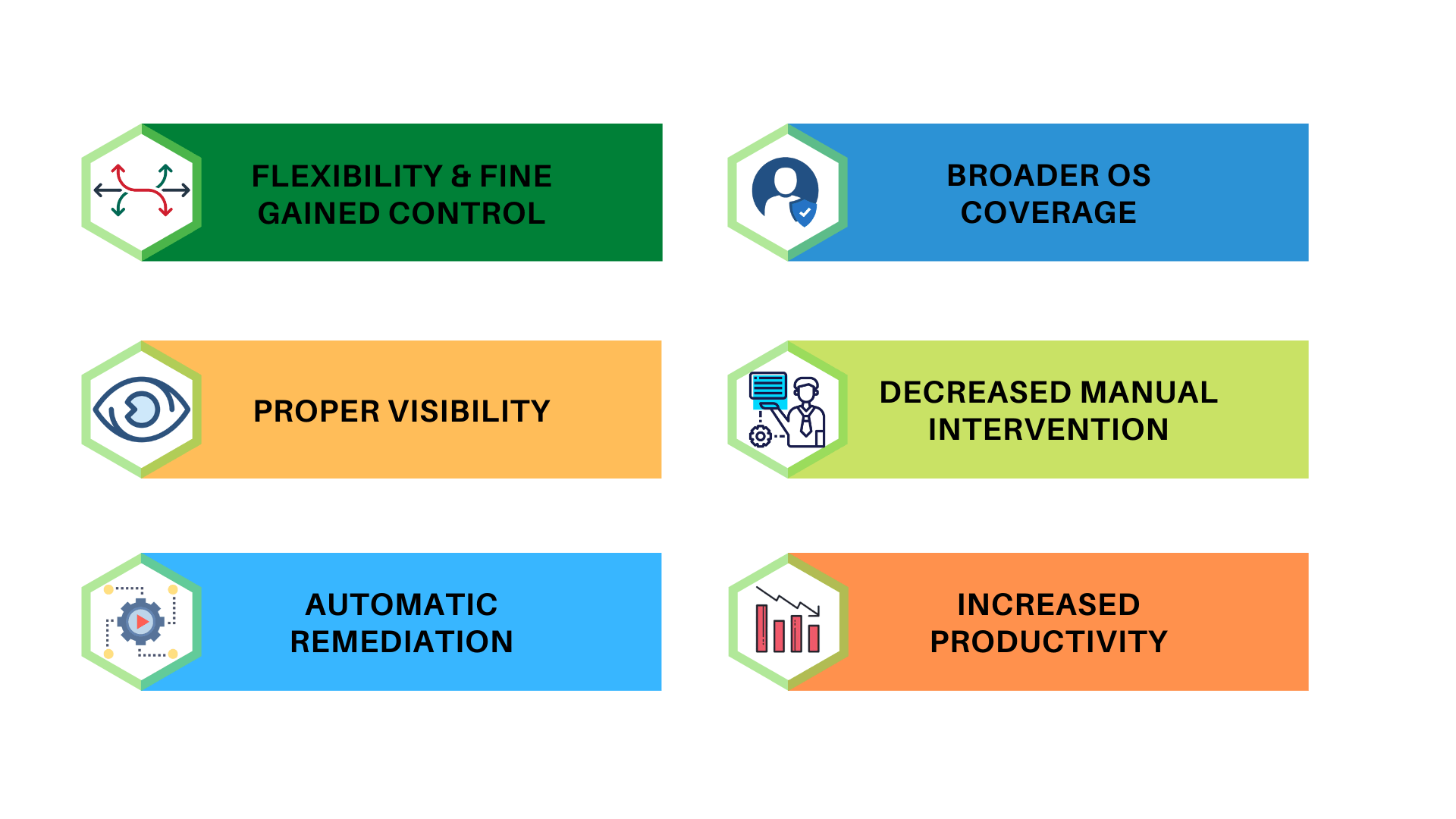 Managing configurations, and security policies with MDM solutions has been challenging for IT Teams since the onset of remote work. But with Chef, IT administrators can quickly implement, declare, and configure management capabilities through comprehensive automation engines. This use case of treating laptops or desktops as any other endpoint, allowing Chef to manage a server on-premises or in the cloud, is not exclusive. Chef Desktop combines Infrastructure config management automation along with security and compliance management automation to manage your entire endpoint state seamlessly. The automation of the entire infrastructure helps in solving some of the repetitive issues that sysadmins/IT Managers might face on a daily basis. This eliminates mistakes and time wasted arising from manual processes, thereby increasing organizational velocity. Chef can help automate the infrastructure configuration, update management, and continuous compliance of your laptop/desktop estate, helping your organization maintain consistent configuration and compliance standards across your enterprise. Furthermore, it allows you to gain continuous visibility into the configuration and compliance state of IT resources across the enterprise using a single tool.