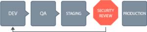 Further exacerbating audit pain is the traditional approach to security evaluations. Typically, security and compliance checks are done at the end of the development process. These checks may be done by teams uninvolved in any of the previous steps and potentially use scanning tools notorious for delivering “false-positives”. Addressing compliance failures this late in the lifecycle also causes extensive rework, especially if exceptions aren’t managed and tracked appropriately.
