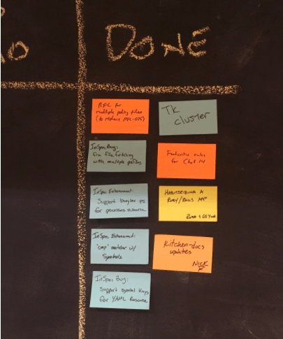 Participants proposed a bunch of topics including InSpec with Test Kitchen, Using Chef with Docker, Using Chef in an air gapped environment, managing workstations with Chef, and SSL trust when bootstrapping nodes. Each of these discussions included the people who are most passionate about the topic at hand.