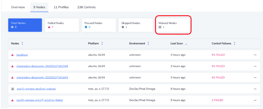 Chef InSpec can take waivers as input to an audit run. The result of that audit can then be piped into Chef Automate to provide complete operational visibility into the customer’s compliance posture, which now includes waivers that are applied throughout the fleet. Chef Automate provides developers, operators, and security engineers a rally point from which they can deliver compliant application and infrastructure changes at the speed of their business.