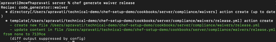 . The output tells you that a new directory is created for waiver, under compliance folder.