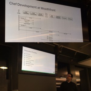 Last month, I spoke at the The Bay Area Chef Meetup, hosted by long time #ChefFriends, Wealthfront. They shared their Chef development process beginning with local dev, using Test Kitchen, all the way through their automated testing pipeline. There were also a lot of great discussions about test driven development practices. You can learn more about Chef’s approach to TDD by watching this on-demand webinar.