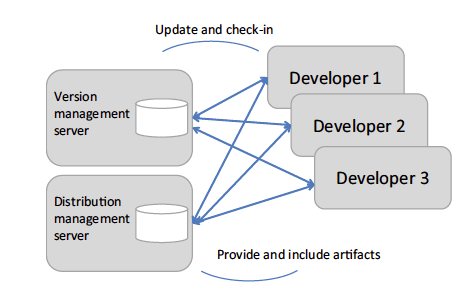 Software configuration management (SCM) helps to improve the delivery process by tracking and controlling changes in the software. These processes are commonly based on the insight, that code and binaries should be handled differently, see Illustration 1. A central term for SCM is configuration item. Usually, the term configuration item refers to produced or consumed artifacts. SCM consists of four major functions: