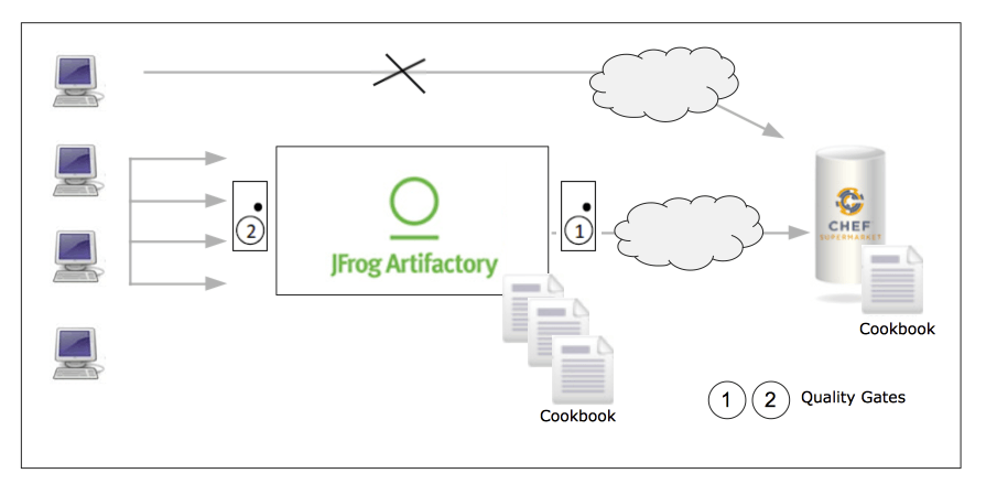 - Artifactory Local Repositories to share internal Cookbooks. Also here Quality Gates can be injected.