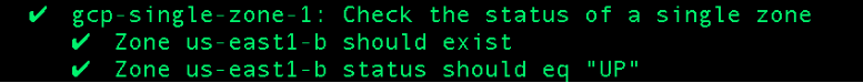 This is fine but we had to supply the zone name ‘us-east1-b’. What if new zones are added that our company uses immediately, does the test need to be updated? Ideally we want to insulate ourselves from these kind of details and run across all available GCP zones each time. This is how InSpec helps us achieve that with plural resources (more details here):