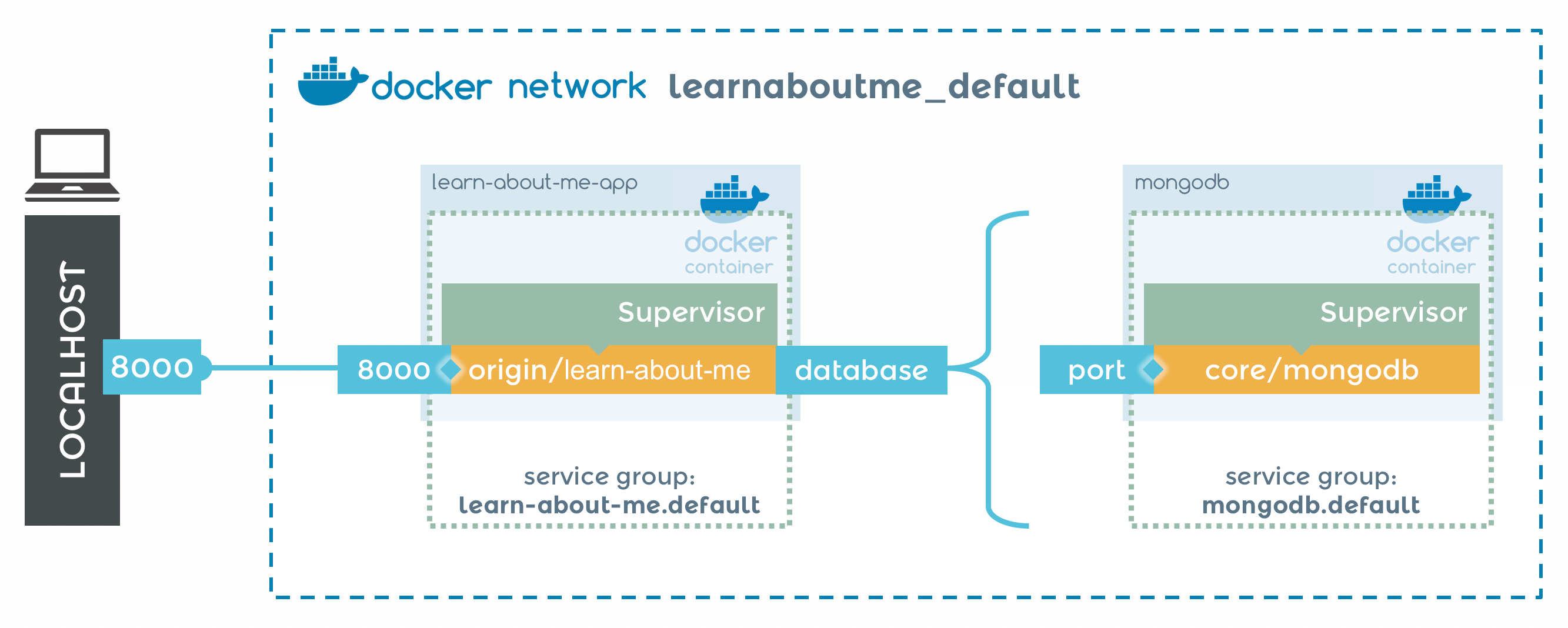 version: '3' services: mongodb: image: core/mongodb environment: # The default bind_ip for mongodb is to 127.0.0.1. Overriding # it here will allow our application to connect to through the # ip that is discovered through the sys.ip. HAB_MONGODB: "[mongod.net]\nbind_ip = '0.0.0.0'\n[mongod.security]\ncluster_auth_mode = ''" learn-about-me-app: image: your_origin/learn-about-me ports: - 8000:8000 # Find the container above named here by the peer # Set the binding 'database' to the mongdb.default service # group. Which the above mongodb is a member. command: --peer mongodb --bind=database:mongodb.default