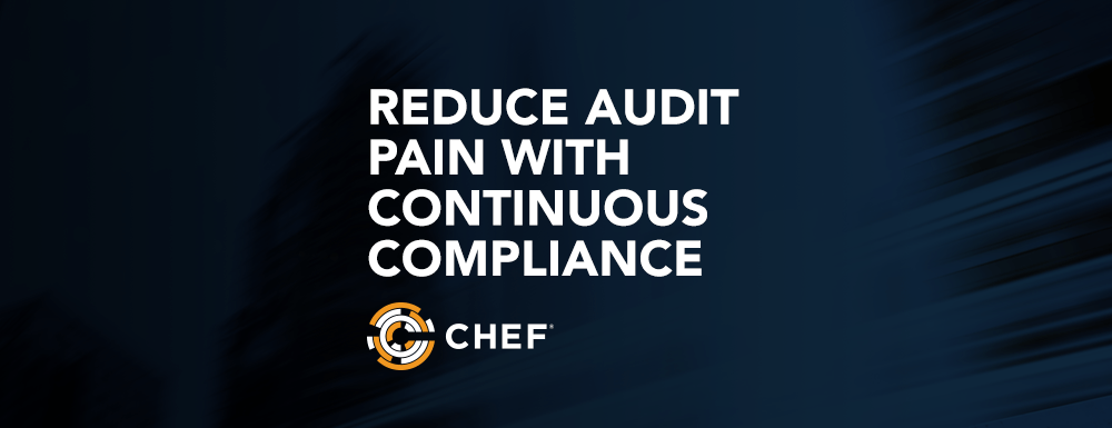 Learn more about how Chef helps reduce audit pain with continuous compliance in our recent webinar below. In the webinar, we demo how InSpec and Chef Automate easily align to frameworks such as FFIEC standards, and how you can transform your organization’s approach to audits through the adoption of continuous compliance.