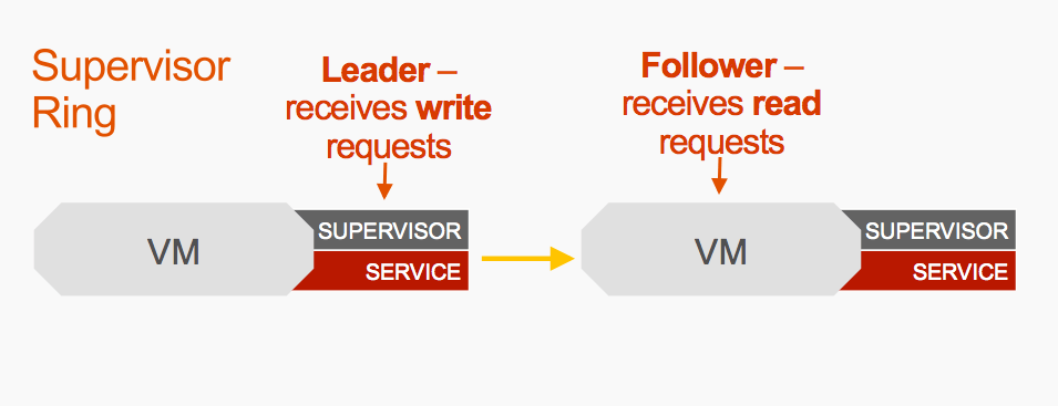 The example in the above video is one supervisor running one service. But one service is pretty limiting. Once we go beyond one service, we need a supervisor ring.